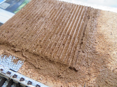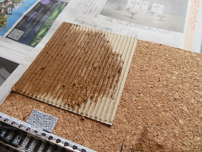 地面の制作( 表現 )ですが、いつもならクッキングペーパーや茶色のパウダーを使用して地面をつくりますが、今回は新素材を使用して作ることにしました。