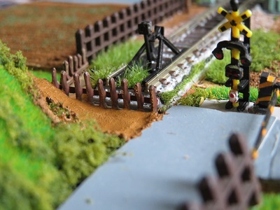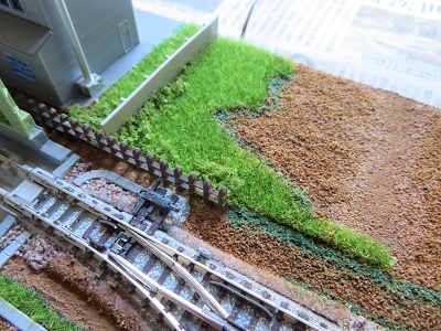 保線詰め所横の空き地に境界用の柵を設置しました。使った柵はトミーテックの建物コレクション。少しくたびれた感じの柵です。土台の部分が目立つので後で何とかします。それとこの空き地もあとで少し手入れ(ストラクチャー設置)をしたいと思っています。