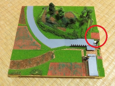さて、ストラクチャの設置へ戻ります。ポイントが集中している場所の空き地をつくっていきます。使用するストラクチャーはトミーテック建物コレクションの「詰め所」です。