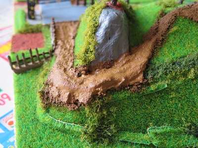 丘の斜面と小道の境界が何か不自然なので、ステクチャ―ペイントが固まってから草で誤魔化そうと思っています。