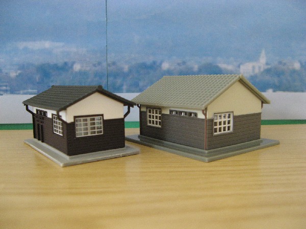 アシェットから発売中の「日本の貨物列車」。その冊子に付属のストラクチャーを組み立てました。5号に付属の「2階建機関区施設」と、7号付属の「貨物営業所」です。