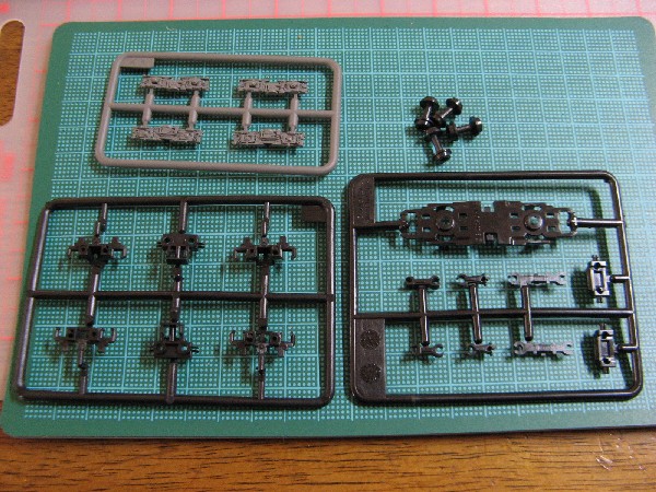 パーツを用意します。台車を組み立ててシャーシに取り付けます。