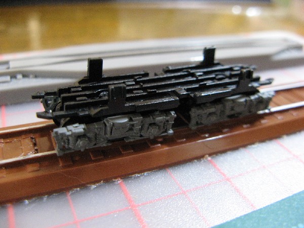 シャーシに台車を取り付けて足回りの完成です。