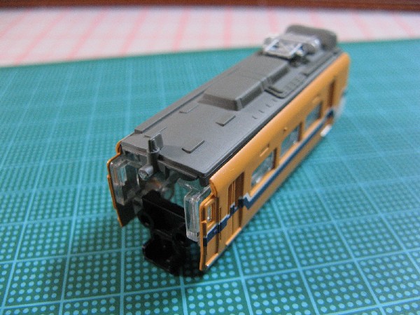 正面、妻面パーツおよび屋根パーツを取り付けて先頭車のボディが組み上がりました。この後は足回りを組み立ててボディーと合わせてパンタグラフを取り付けます。