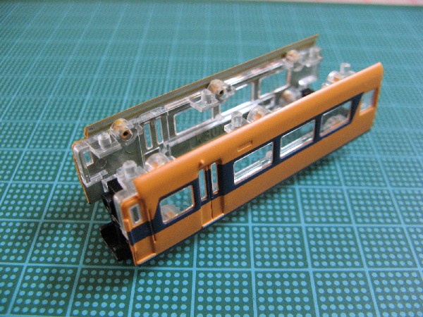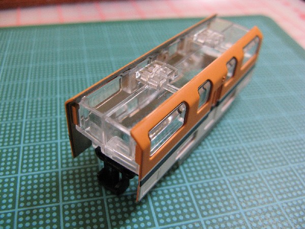 この後は屋根パーツおよび妻面パーツを取り付けて足回りと組み合わせれば中間車の完成です。