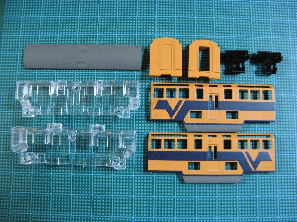 中間車のパーツです。足回りは先頭車と同じ要領で組み立てておきます。