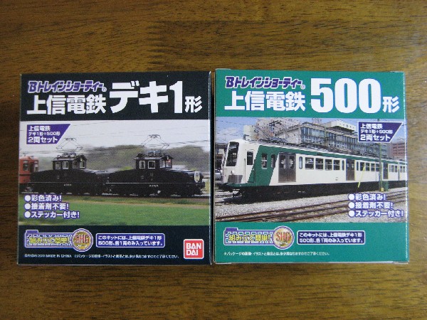 1箱にデキ1形1両と500形電車1両が入っています。電車1両では様にならない(編成にならない)ので2箱購入しました。