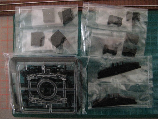 先頭車から組み立てます。最初は先頭車の足回りから。