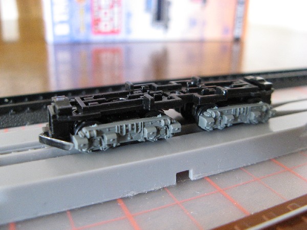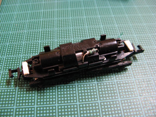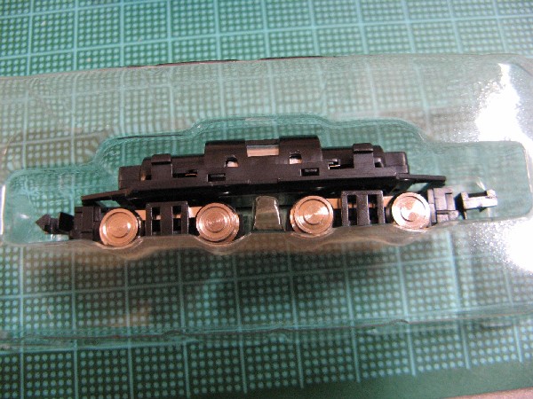 バンダイ製の動力ユニットです。今回、このデキのために初めて購入しました。いつもはKATO製の動力ユニットを使っています。今回はデキ1形が1/150スケールのBトレ車両で、ショーティー化されていないため、車両の雰囲気を壊さないようBトレ専用の動力ユニットを使用しました。