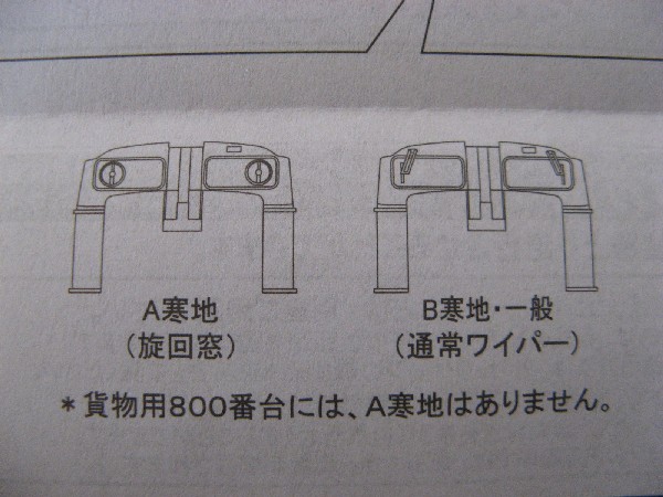 取説の注意書きにもあるように、「正面パーツ、屋根パーツなどはセットされているパーツが異なります」となっているので、フロンドガラスのB寒地・一般(通常ワイパー)が入っていないのは仕方がないのですが・・・。