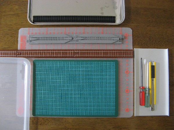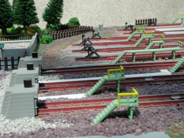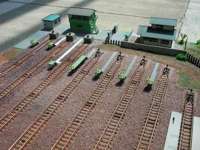 こちらは車庫線レイアウトの末端部。 電車庫は縮小改造中に破損してしまったのでありません。