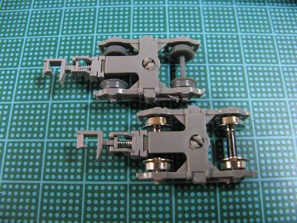 動力ユニットを取り付けない車両は、台車の車輪をプラスチック製から金属製に交換します。