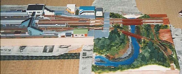 数少ない詳細な写真から。 左端部分のアップ写真です。 ほとんど解体してないこのレイアウトですが、踏切のセクションと支線が分かれてゆく川のセクションは奇跡的に残っています。