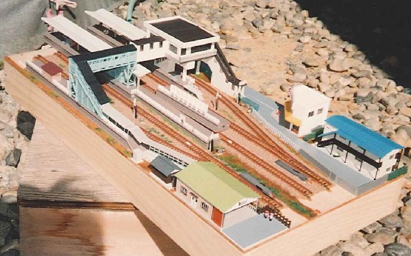 人生で一番最初に手かげたレイアウトです。 道路側から1番線の順で5番線まである駅を製作しました。 中津原駅は、ここから支線が分岐しているという設定で製作しています。 支線の列車は4番線 ・ 5番線から発着します。