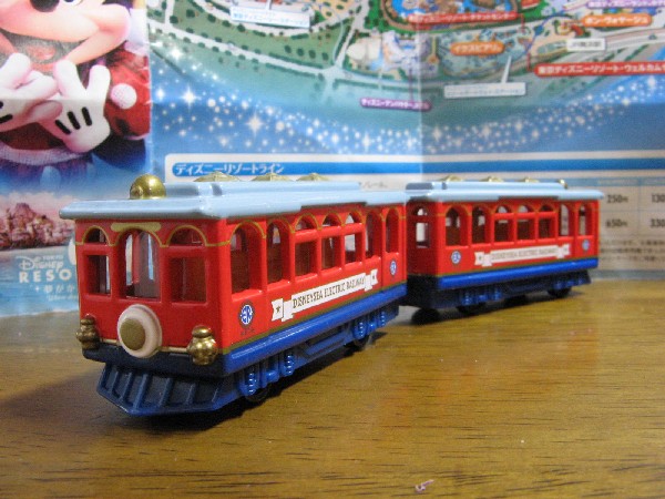 ディズニーシー ・ エレクトリックレールウェイ。 連結が出来る仕様だったので、実車どおりの編成を再現すべく2両購入しました。