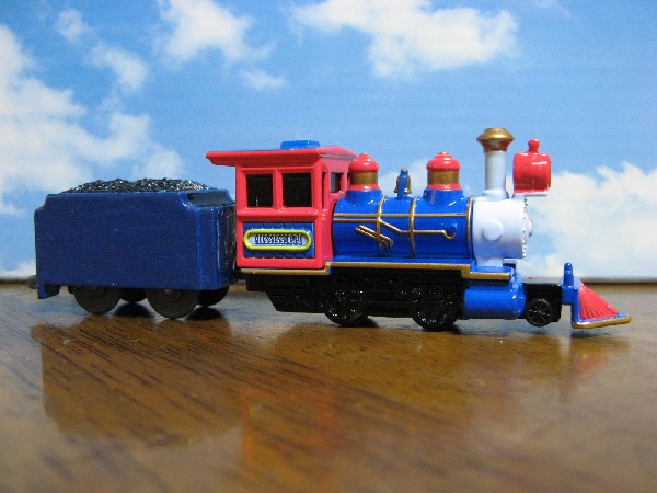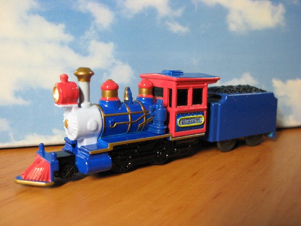 写真のとおり、このトミカは機関車だけで後ろの炭水車がありません。 この炭水車の有無が現地 (ディズニーランド) での購入をためらわせた原因でもあります。