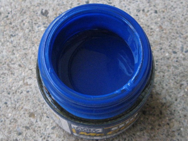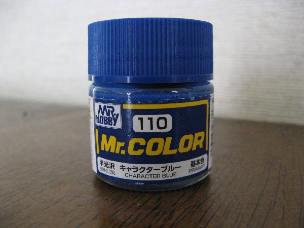 店頭でいろいろと見た結果、これが一番近い色かな?。 ミスターカラーのキャラクターブルーです。中の塗料の色合いはこんな感じです。