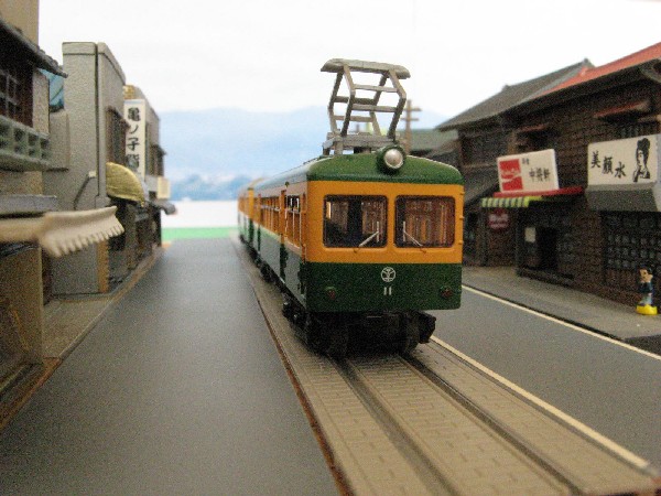 別の角度から町中の併用軌道を走るモハ11です。