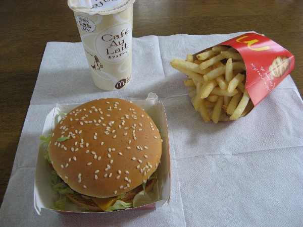 マックのビックマックが200円ということでお昼はビックマックとポテトです。 ビックマックをおいしく頂いたあとは、架線柱の取り付け作業にかかります。
