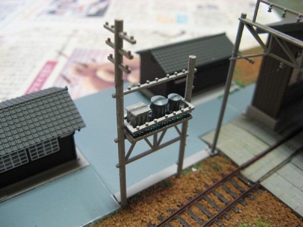変圧器を作り変圧器台へのせて変圧器柱の完成です。