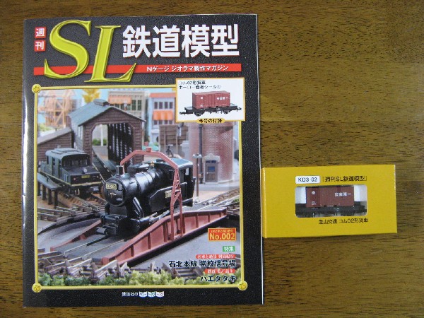 連結した車両は、「週刊SL鉄道模型」第2号の付録で里山交通コム02形貨車です。