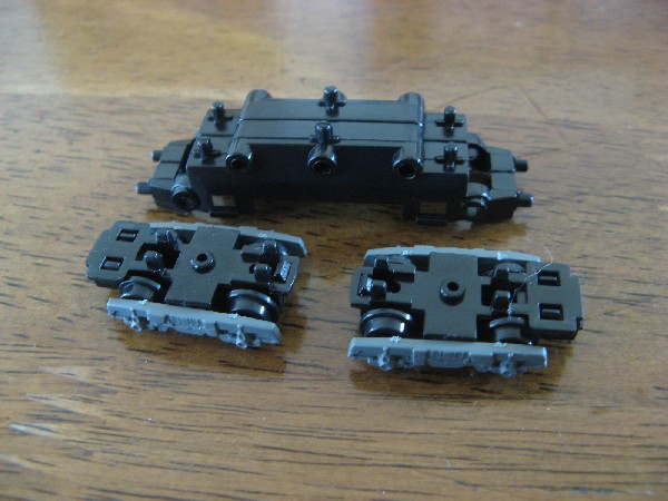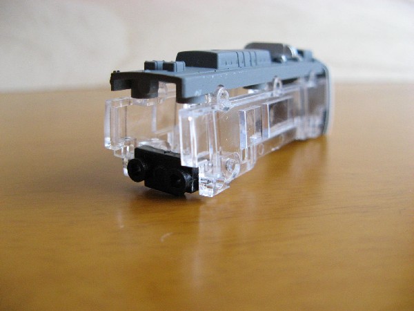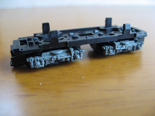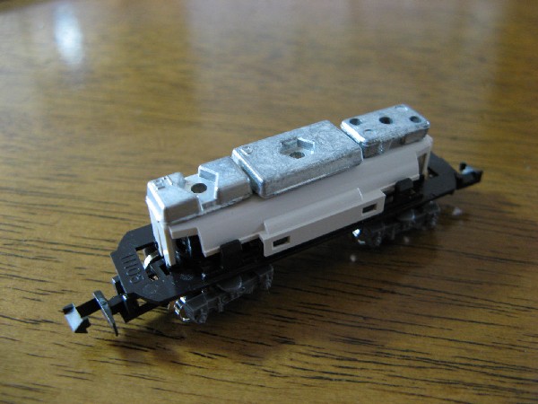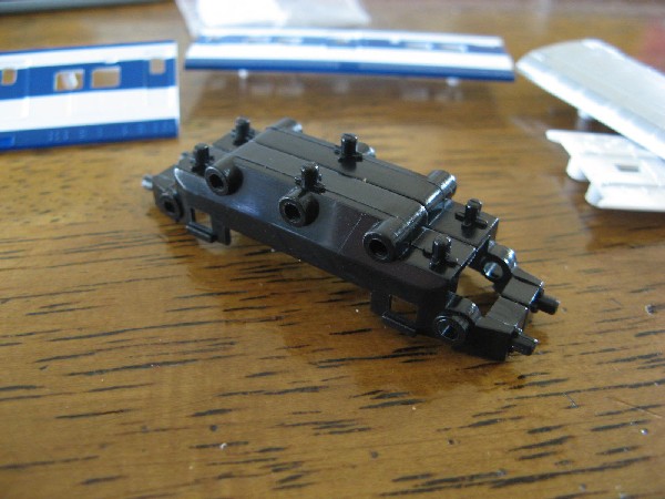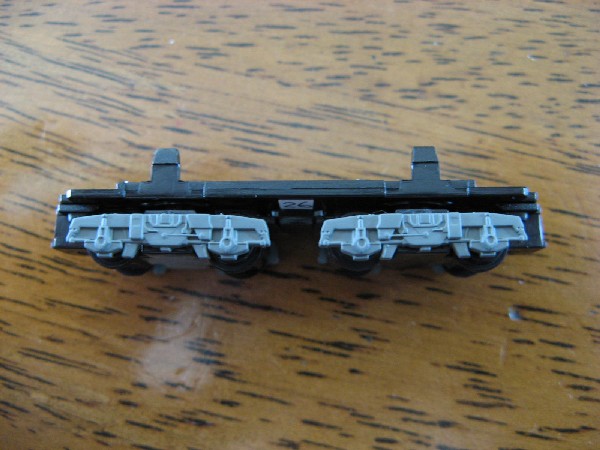 Nゲージ化したいのですが、旧型台車用のKATO製動力ユニットが無いためあきらめます。 なお、バンダイから、セットに入っている台車を流用する動力ユニットが発売されていますが、好みの問題で使用していません。