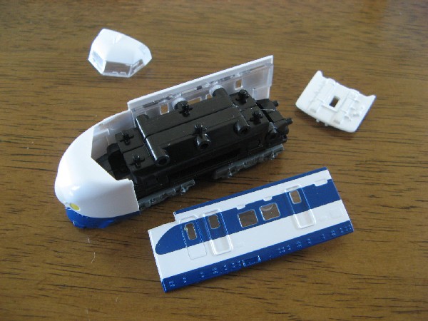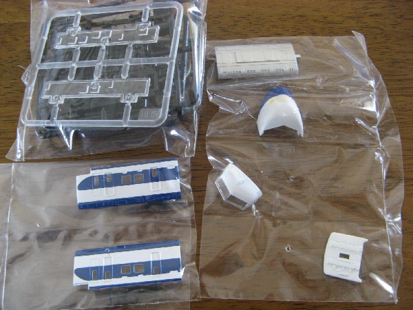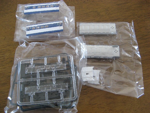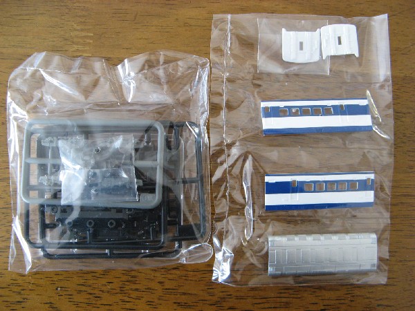 つづいては中間車ですが、側面と屋根のパーツのみで、側面と側面を接続するパーツ(下の写真)が無いので、こちらは0系新幹線の16両フル編成セットの余り物から調達しました