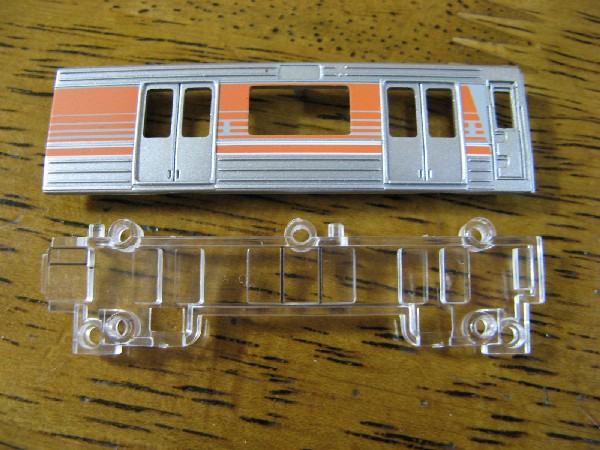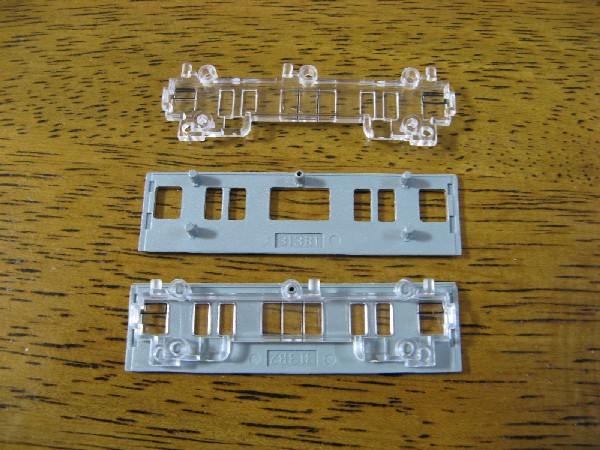 組み立て方は先頭車と同じです。 コアパーツに側面、妻板、屋根を取り付けていきます。