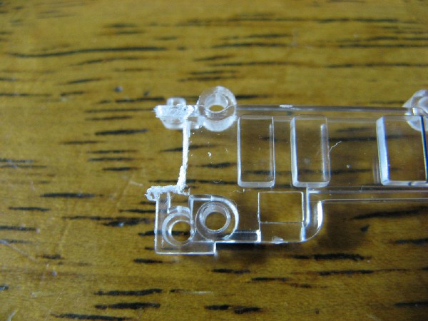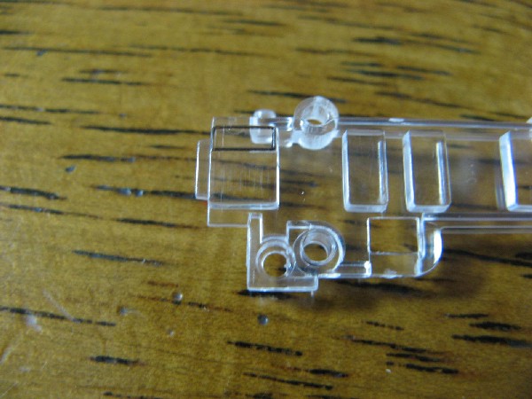 左端の窓ガラスを切り取ります。 カッターとプラスチックニッパーを使って丁寧に作業します。