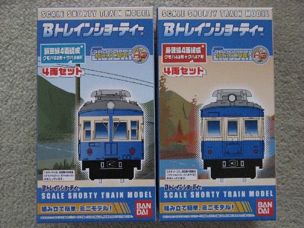 Bトレインショーティー 「飯田線4両編成 クモハ52形+サハ48形」セットと 「身延線4両編成 クモハ43形+クハ47形」セットです。