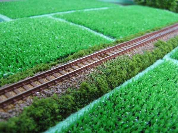 前回はここまで制作しました。 今回は線路の両端部分、施工基面とか犬走りとかフォーメーションとか呼ばれている場所に、雑草を表現していこうと思います。