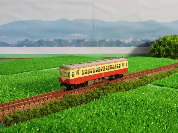 少しカメラのアングルを引いて撮影してみました。 田園風景の中を走る地方ローカル私鉄の気動車です。 数年後には廃止になるのかな?という設定でどうでしょうか?
