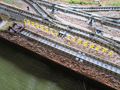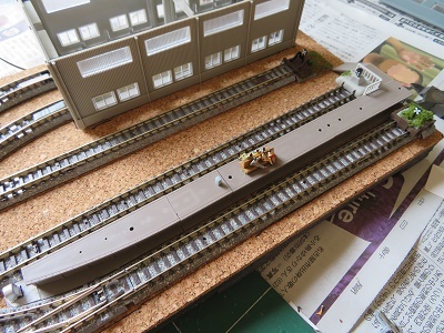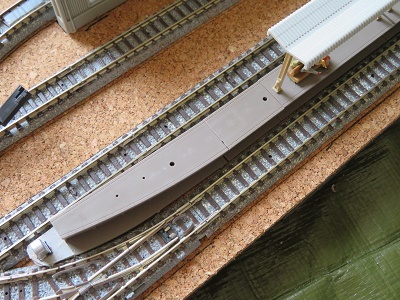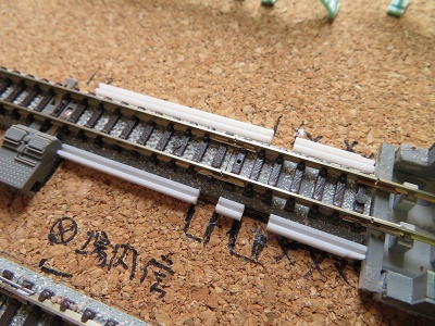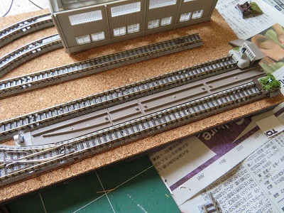 次は車庫の留置線関係。車止めがKATO製なので道床のかさ上げをします。