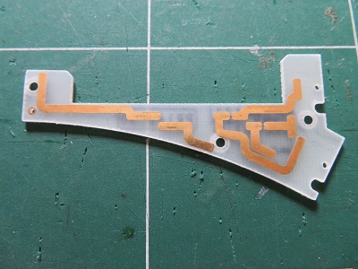 裏ふたの部分がプリント基板になっています。このプリント基板の配線をよく見ると汚れているところがあります。