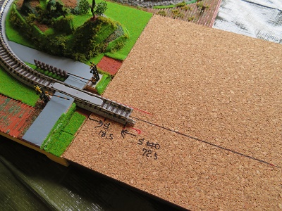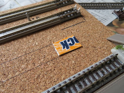 コルクを使ってかさ上げをしました。かさ上げをする目的はバラストを撒くときの量を減らすためです。それと線路が地面に埋まった感じを表現するためもあります。