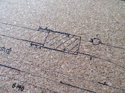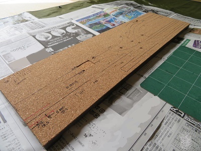 2mm厚のコルクシートからパーツを切出します。