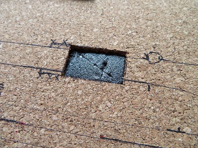 切出した2mm厚コルクで埋め戻します。