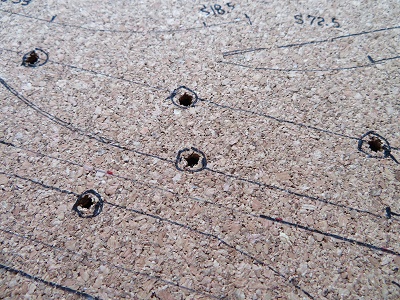 丸印で穴あけの位置を記入してあるので、この位置に穴をあけていきます。
