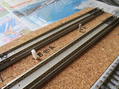 ブラでできたバラストをレールに沿わせて固定します。これで接続レールがスムーズに着脱できるようになります。
