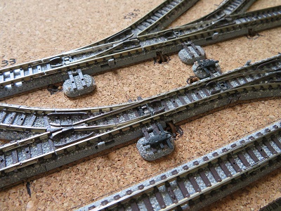ポイント部分にダミーのポイント転てつ機を取り付けます。