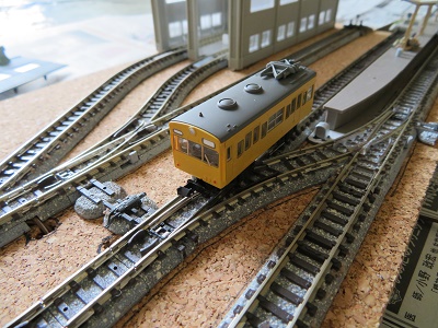 車両をレールに乗せて試運転です。ポイントの転換も今のところ問題なしです。