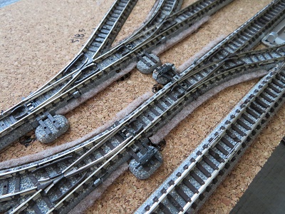 やっぱりフェルトはバラストと違うので違和感ありすぎです。でも、これでポイントの転換不良および通電不良が起こらなければ良しとしましょう。
