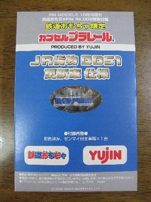 こちらはDD51の青更新車がほしくて、雑誌社からバックナンバーを取り寄せたもの。鉄道おもちゃという雑誌のおまけで付いていたカプセルプラレールです。箱から出して写真を撮りました。