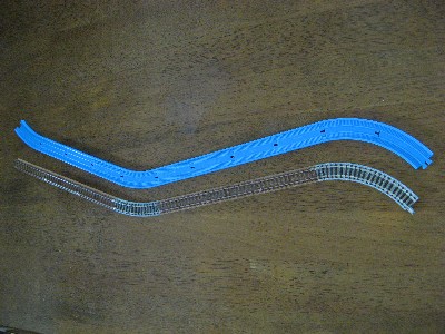 カプセルプレレールのコンテナ貨物列車を機関車をはじめいろいろ集めたので、専用のお立ち台を作ろうと計画した。デジカメでの撮影も考慮に入れてレール配置は写真のような変形S字カーブにすることに。