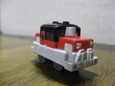 実車の写真がこれ! カプセルプラレール自体の凸がデフォルメされているのと、エンジンルームと運転台の高さの比率が明らかに違っているので、灰色、赤色、黒色の比率が実車とは全然違っている。