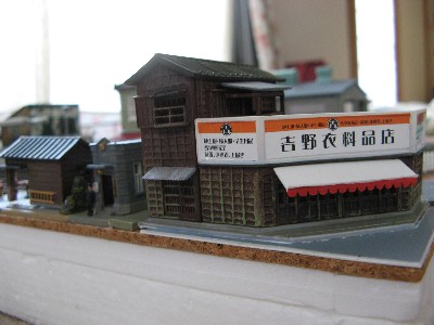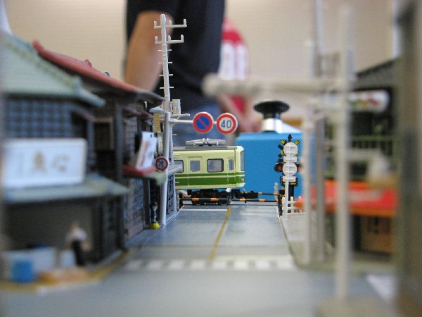 反対側の警報器と遮断機。本来なら警報機は左側なのだが、酒屋さんで警報機が見えないので左側に立っているパターンを模型で再現してみた。