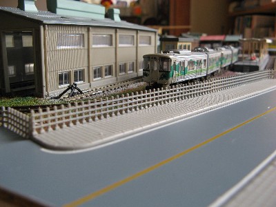 ずいぶん前から考えていたホーム終端部の柵。写真のように結局無難な鉄路柵になりました。