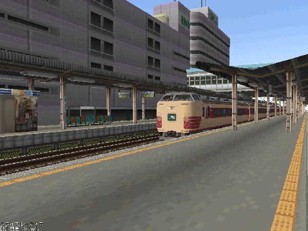 始発駅の手前にある大通りの踏切を渡ります。この駅からは支線が分かれているという設定です。