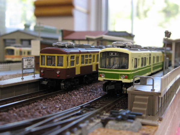 愛環の車両です。Bトレインショーティーの2両編成は本当にミニ電車です。来場の皆さまも 「かわいい~」 の連発でした。写真ではわかりづらいですがトイレの有・無を作り分けしてあります。