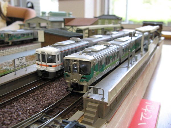 基本的に愛環は2両編成で走らせましたが、1編成だけは4両編成化してあります。同地域の列車としてJR東海の313系も参加しています。